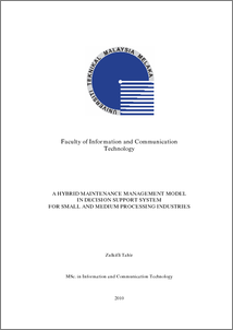 Tahir, Zulkifli (2010) A hybrid maintenance management model in decision support system for small and medium food processing industries. Masters thesis, Universiti Teknikal Malaysia Melaka.